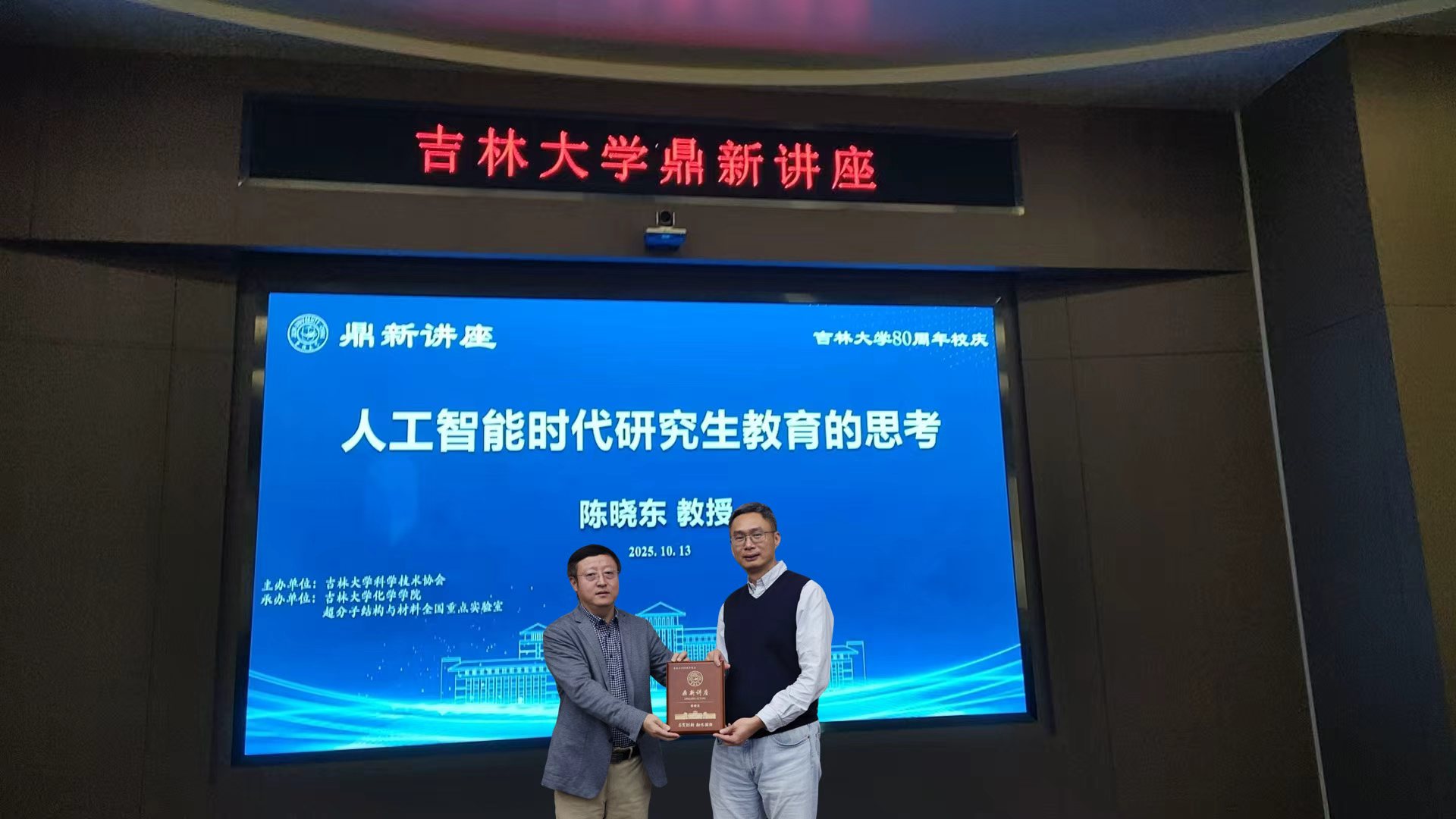 鼎新讲座,并以“人工智能时代研究生教育的思考”为题作专题报告。超分子结构与材料全国重点实验室副主任张文科主持讲座并为陈晓东颁发“鼎新讲座纪念牌”。
