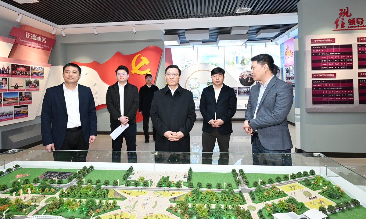 ,田辉实地考察院史馆、含硼有机功能材料实验室、高分子合成化学实验室、功能复合固体能源材料实验室,深入调研化学学科发展建设、科研成果转化、服务地方发展以及党建工作等情况。田辉指出,海角社区