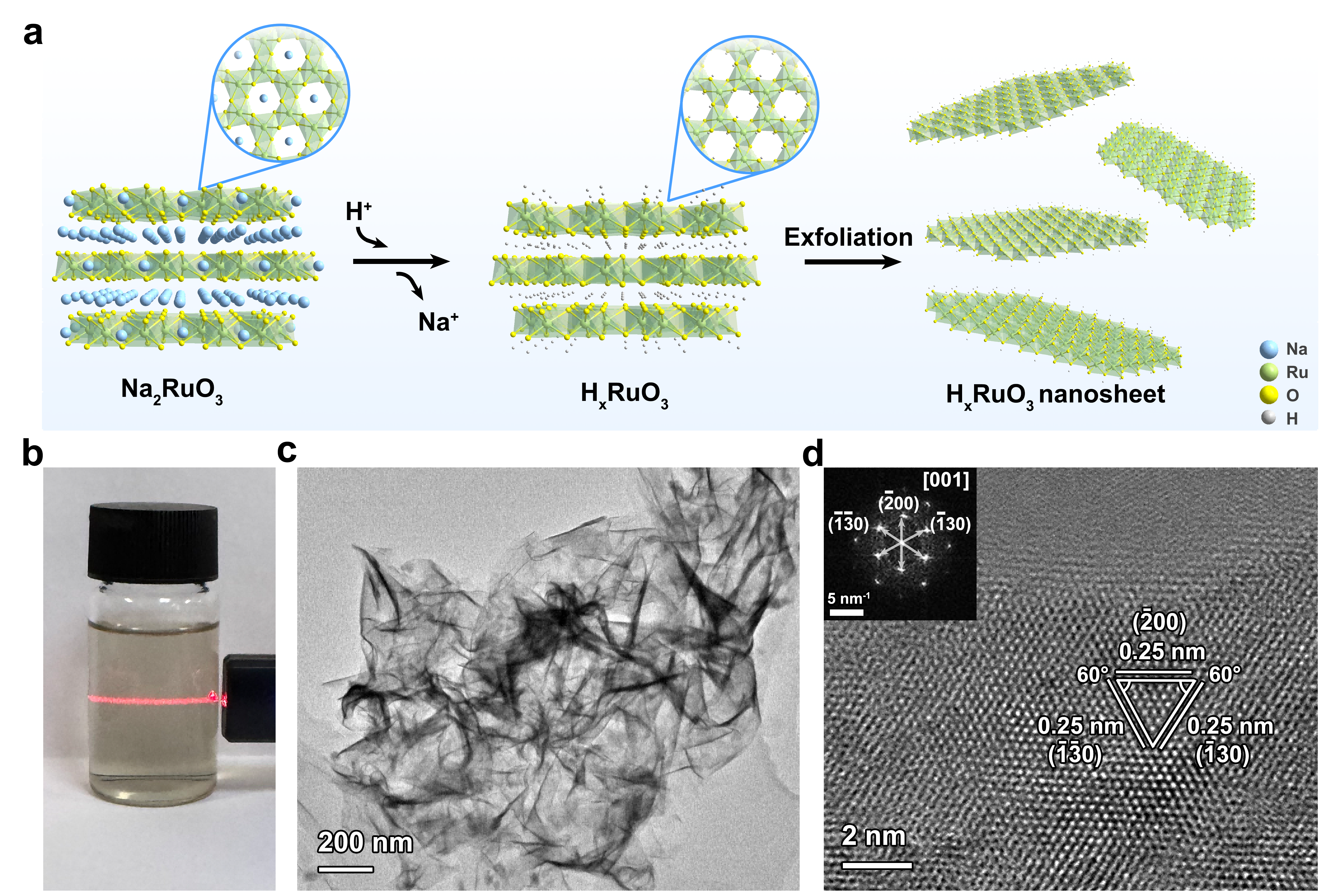 图3酸交换剥离法制备HxRuO3纳米片。